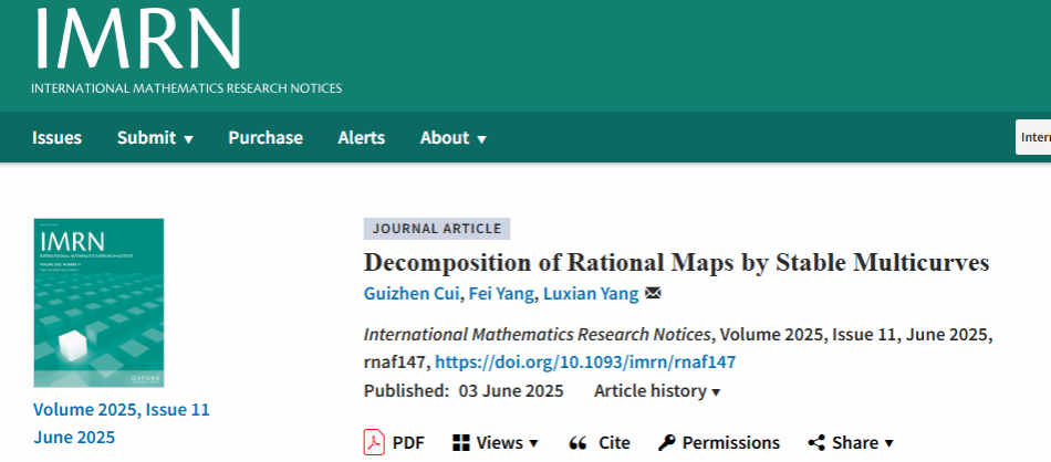 杨飞教授共同完成。该论文发表于国际著名期刊 《International Mathematics Research Notices》。