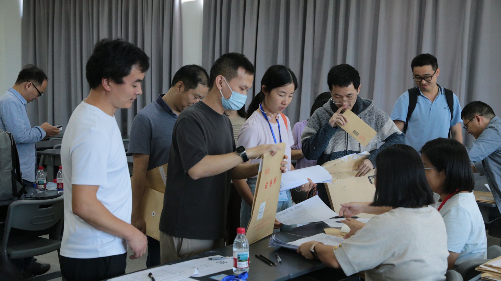 考务室内考前领取试卷的情况