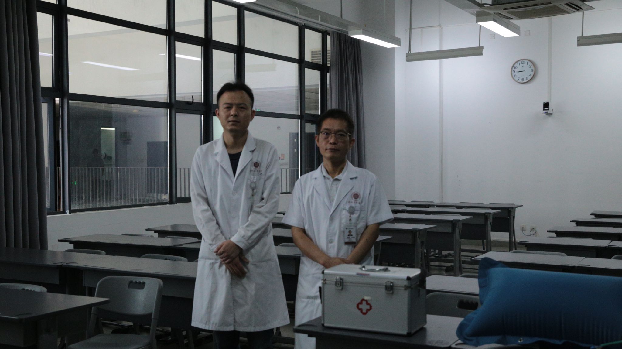 由于比赛期间人流密集,为了考生的健康和安全考虑,考点组委会配备了医用口罩、温度计,设立了医疗应急处置点、机动教室等应急场所。同时,校医院派出了两位经验丰富的医生,提供应急医疗救助。考点组委会专门成立了应急工作小组,制订了应急预案,提前规划应急处置方案,明确人员责任,确保竞赛安全、平稳、顺利地进行。